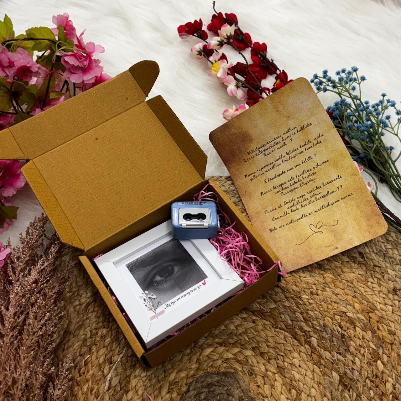 This hamper is specially designed for couples who want to preserve their love in a creative and meaningful way. From eye-to-eye connection photos to a personalized vintage-style message, every element is crafted with care.